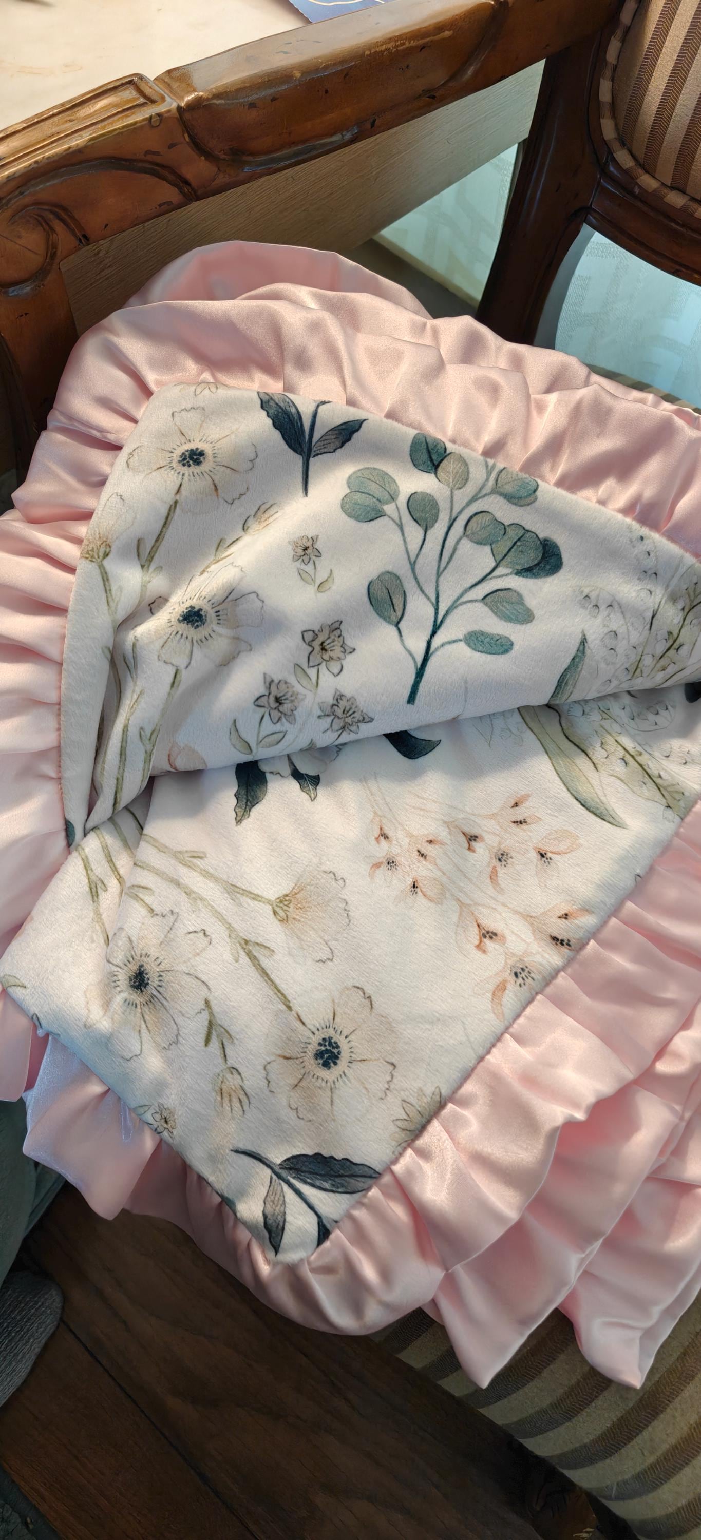 A Personalized PINK FLORAL baby girl blanket. A Minky Blanket for a BOHO nursery with a delicate pink theme. A Soft baby girl blanket for a floral nursery makes an eye-catching focal point for your nursery + lots of soft snuggles for that new baby!!
