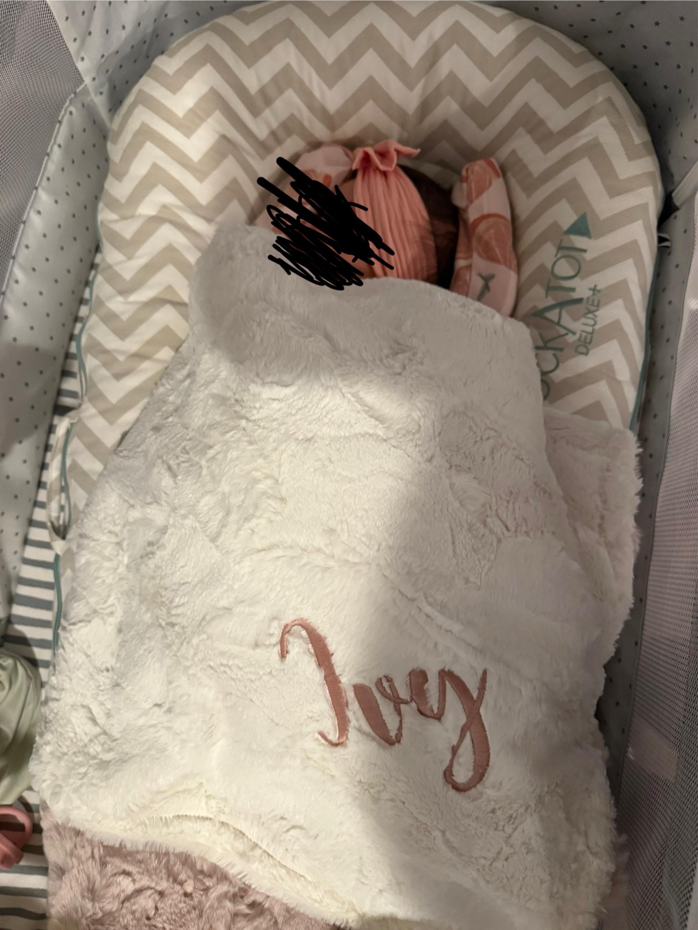 This personalized pink baby blanket for a girl is a soft minky blanket, perfect for a newborn baby gift. Handmade with name embroidery, it's a custom gift ideal for infants.