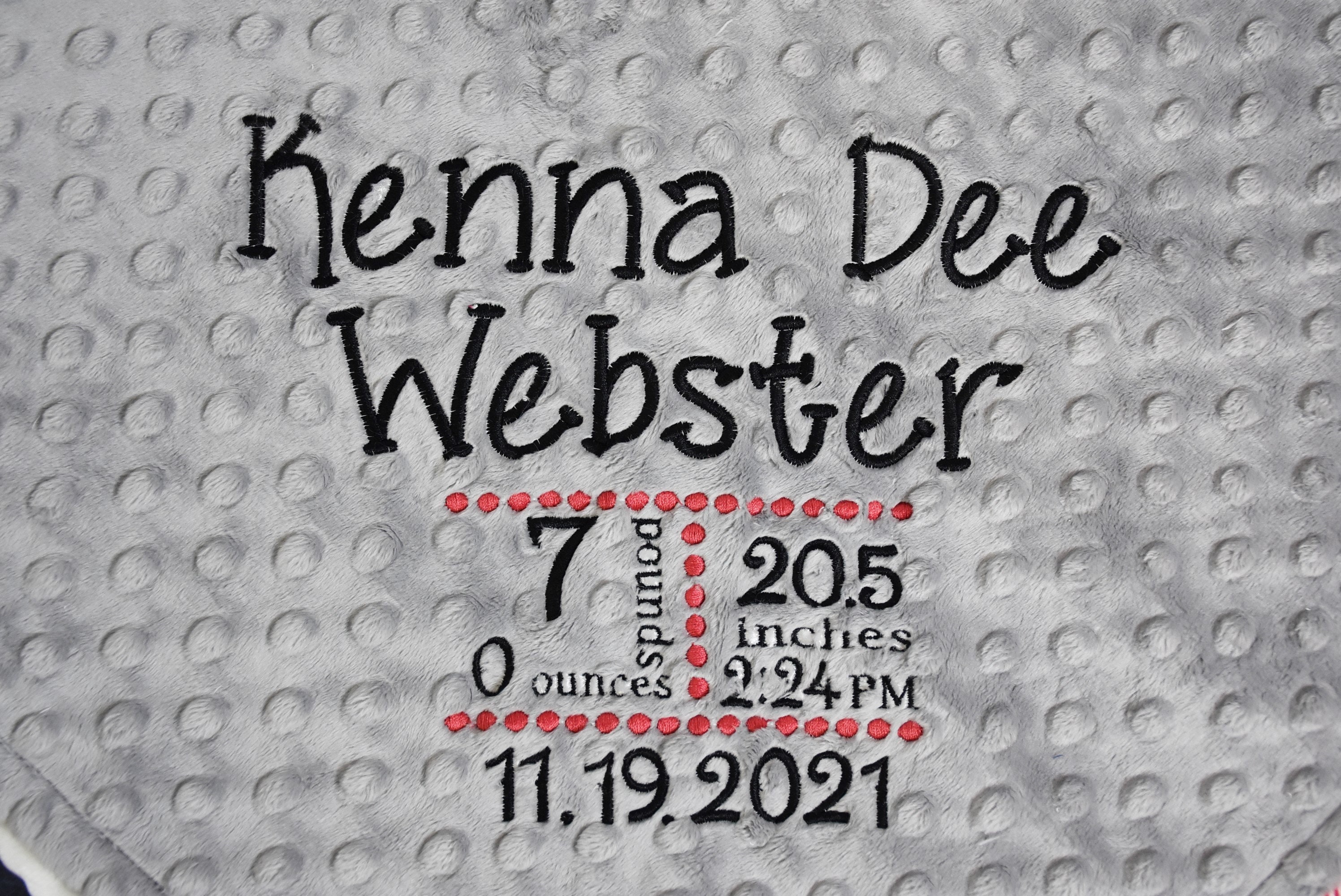 This add on option will give you the possibility to add birth stats to you baby blanket. An excellent option to make that blanket extra special! Choose a layout that would work best for you! Include the birth stats in the "personalization box' or 'note to seller' box at checkout.
